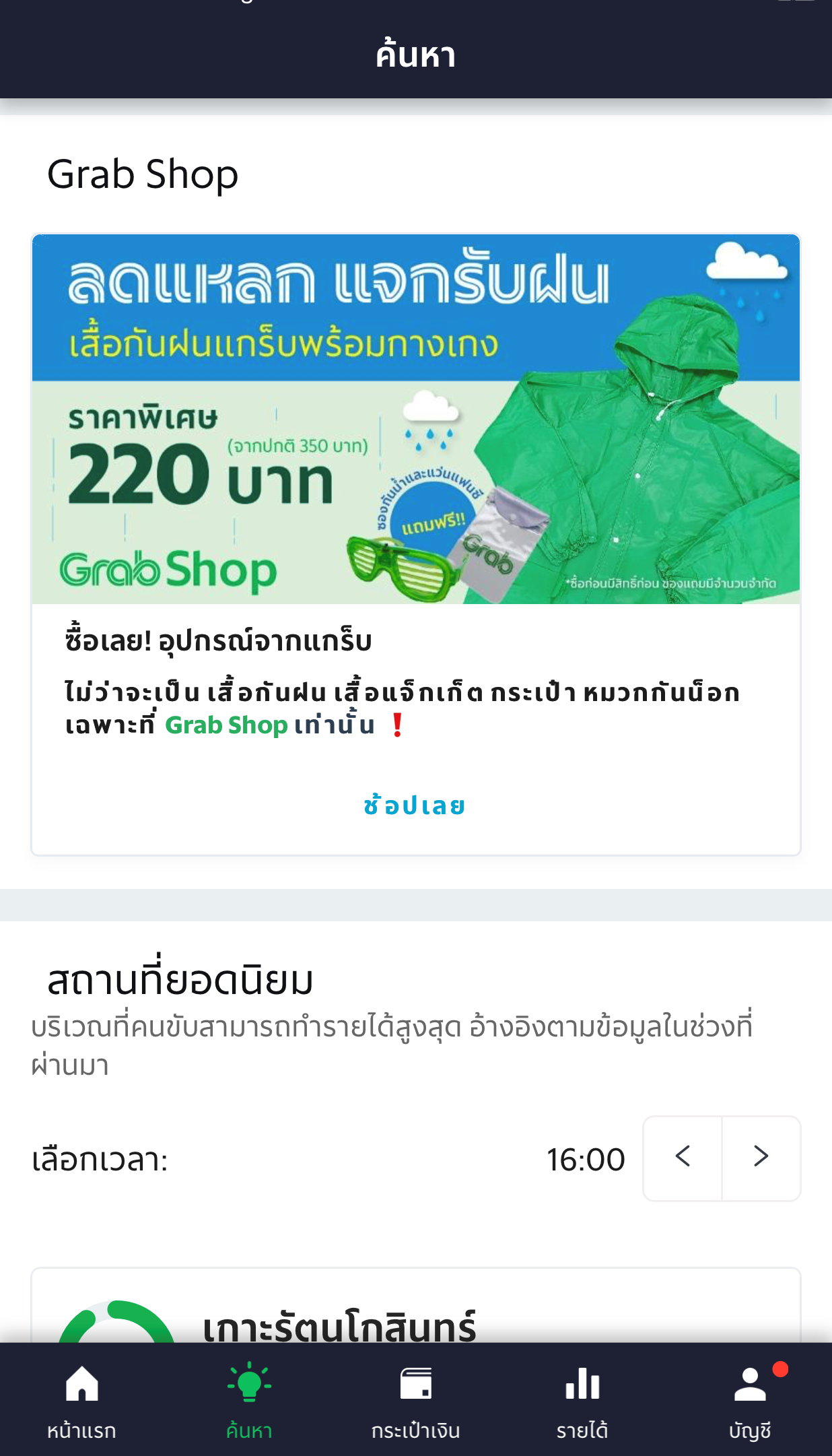 ฟังก์ชั่นค้นหาข้อมูลจำเป็น (Discover) สามารถเข้าได้จากหน้าหลักของแอป Grab Driver (ตามรูปด้านล่าง) โดยในฟังก์ชั่นนี้จะรวบรวมข้อมูลที่จำเป็นสำหรับเหล่านักขับสามารถอัปเดตข่าวสารต่างๆ ทีเด็ดของฟังก์ชั่นนี้คือ สถานที่ยอดนิยม ที่บอกรายละเอียดพิกัดแหล่งงานเยอะ ให้เหล่านักขับวิ่งไปหางานได้ถูกจุด ในหน้าหลักของฟังก์ชั่นนี้จะมีการอัปเดตข้อมูลอยู่เมอ หากพบว่าไม่เหมือนกับก่อนหน้านี้ก็ไม่ต้องตกใจไปนะ พาร์ทเนอร์สามารถเลื่อนลงมาเรื่อยๆ เพื่อหาข้อมูลที่ต้องการได้เลย