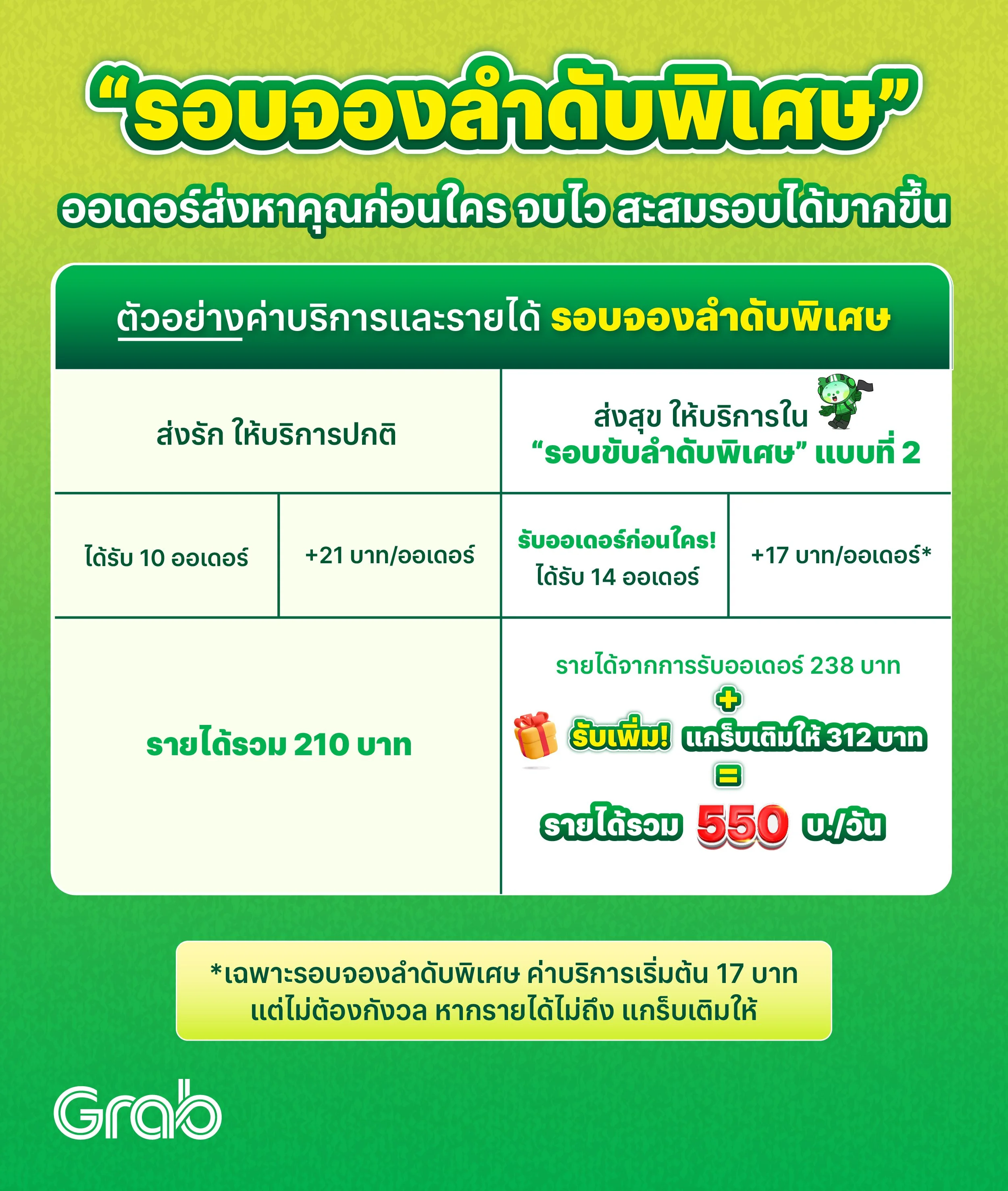 - ตัวอย่างสิทธิ์การจองรอบ: หากผู้ให้บริการต้องการจองรอบในวันที่ 25 ส.ค. 66 จะคิดจากประวัติการรับออเดอร์ในวันที่ 23 - 24 ส.ค. 66