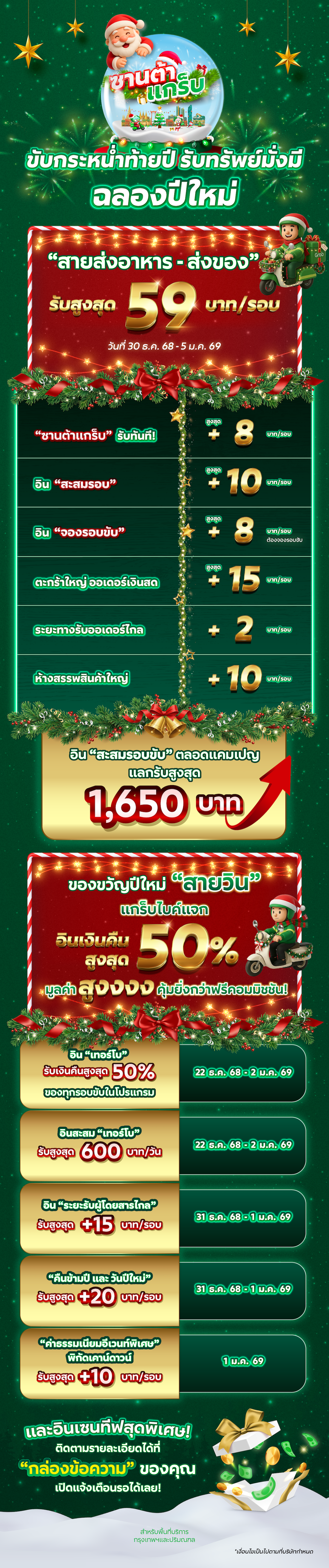 [กรุงเทพฯ] ซานต้าแกร็บ 2025 ขับกระหน่ำท้ายปี รับทรัพย์มั่งมี ฉลองปีใหม่ 🎅🏻