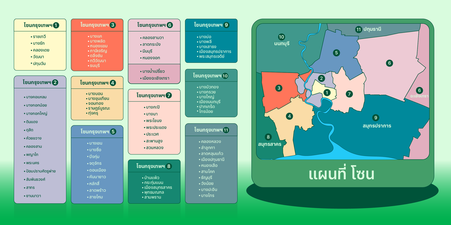🗺️ พื้นที่โซนกรุงเทพ 1 - 11