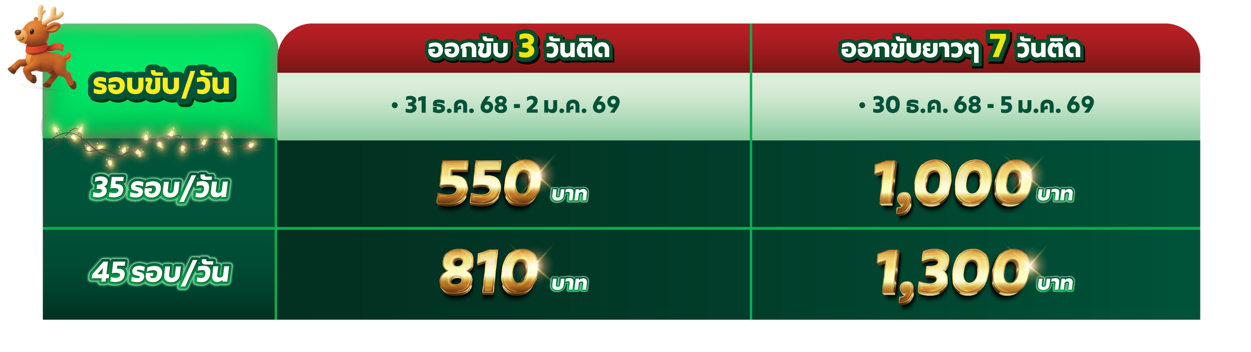🦌🎁 อิน “ออกขับยาว ๆ ติดกัน” รับสูงสุด 1,300 บาท