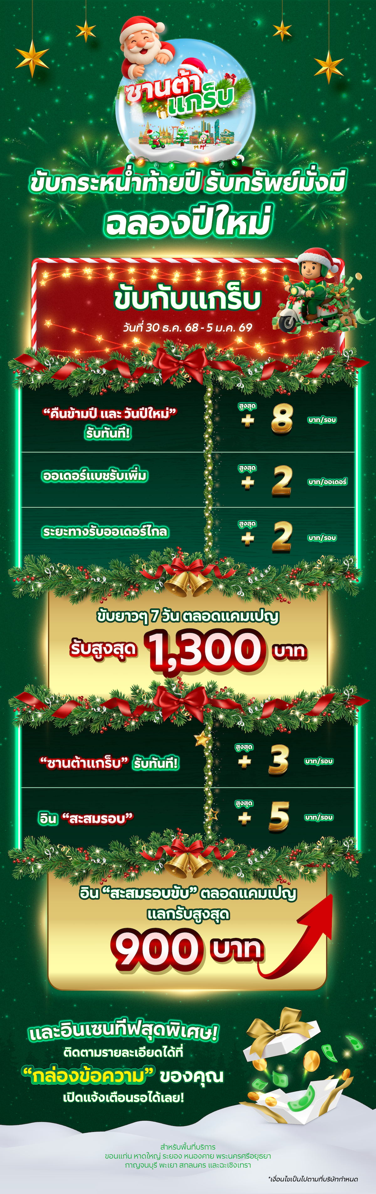 [ซานต้าแกร็บ 2025] ขับกระหน่ำท้ายปี รับทรัพย์มั่งมี ฉลองปีใหม่ 🎅🏻