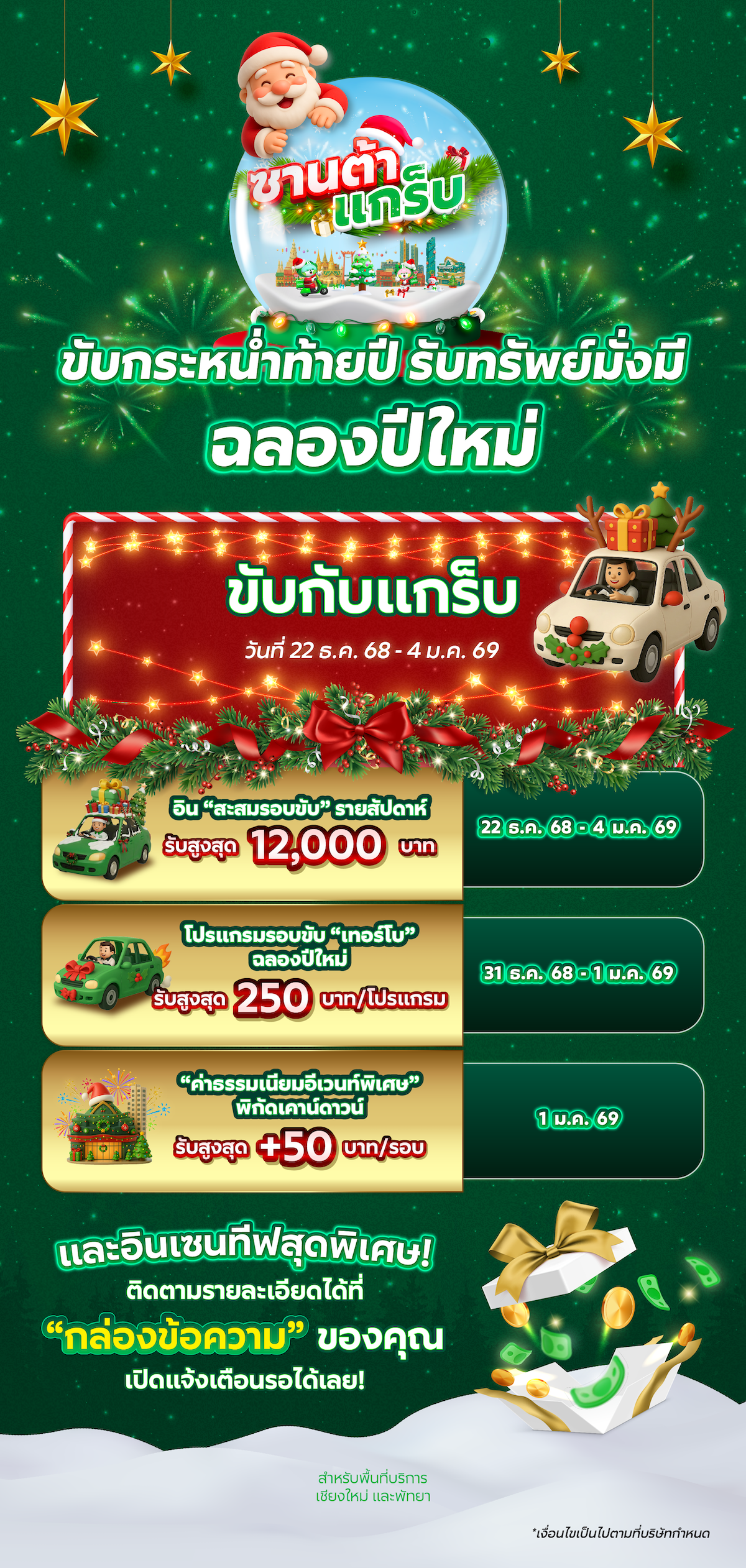 [ซานต้าแกร็บ 2025] ขับกระหน่ำท้ายปี รับทรัพย์มั่งมี ฉลองปีใหม่ 🎅🏻
