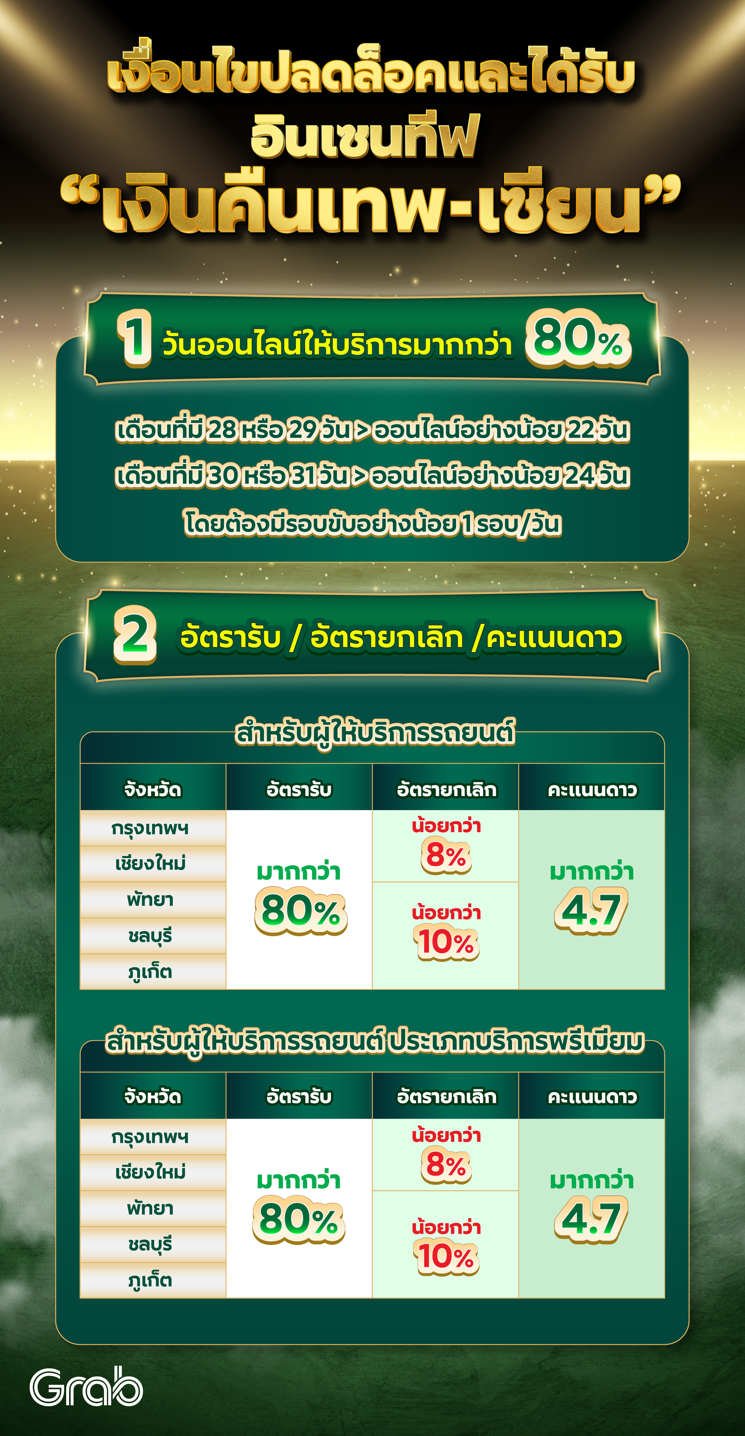 ผู้ให้บริการจะต้องผ่านเงื่อนไขทั้งหมดเท่านั้น ตรวจสอบรายละเอียดเพิ่มเติมได้จากตัวช่วยนับรอบขับ