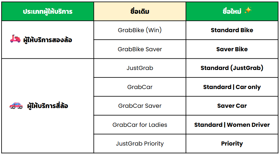เปลี่ยนชื่อประเภทบริการรับ - ส่ง ผู้โดยสาร ทุกอย่างเหมือนเดิม เพิ่มเติมคือชื่อใหม่!