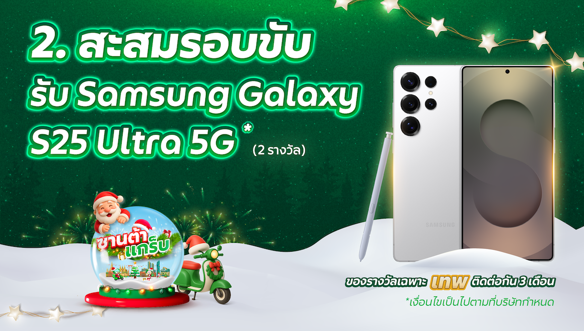 2. สะสมรอบขับ “คืนข้ามปีและวันปีใหม่“ รับโทรศัพท์มือถือ Samsung Galaxy S25 Ultra 5G