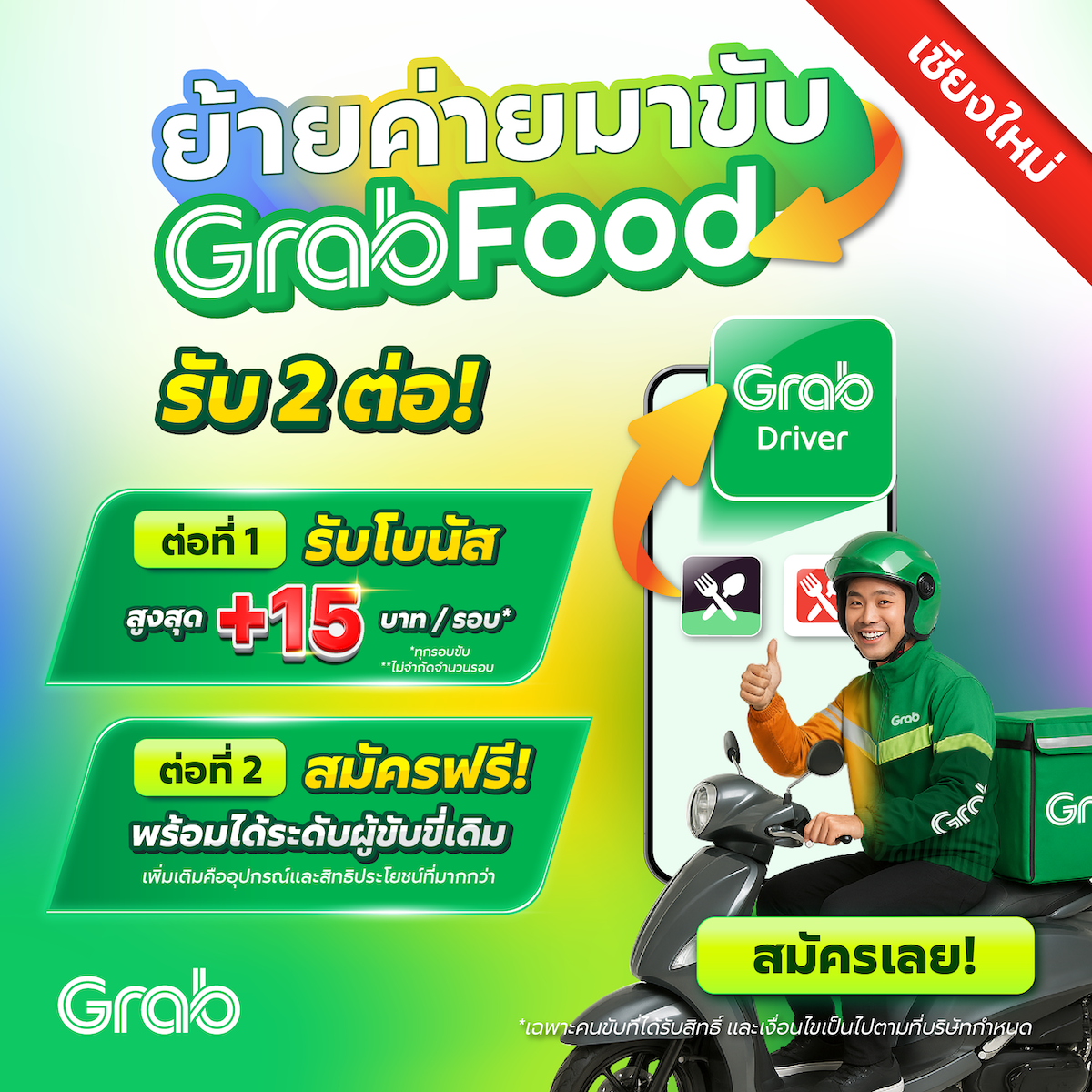 [เชียงใหม่] 🚨 ย้ายค่ายมาขับแกร็บ โบนัสจัดเต็ม ตอบโจทย์ทุกสไตล์การขับ