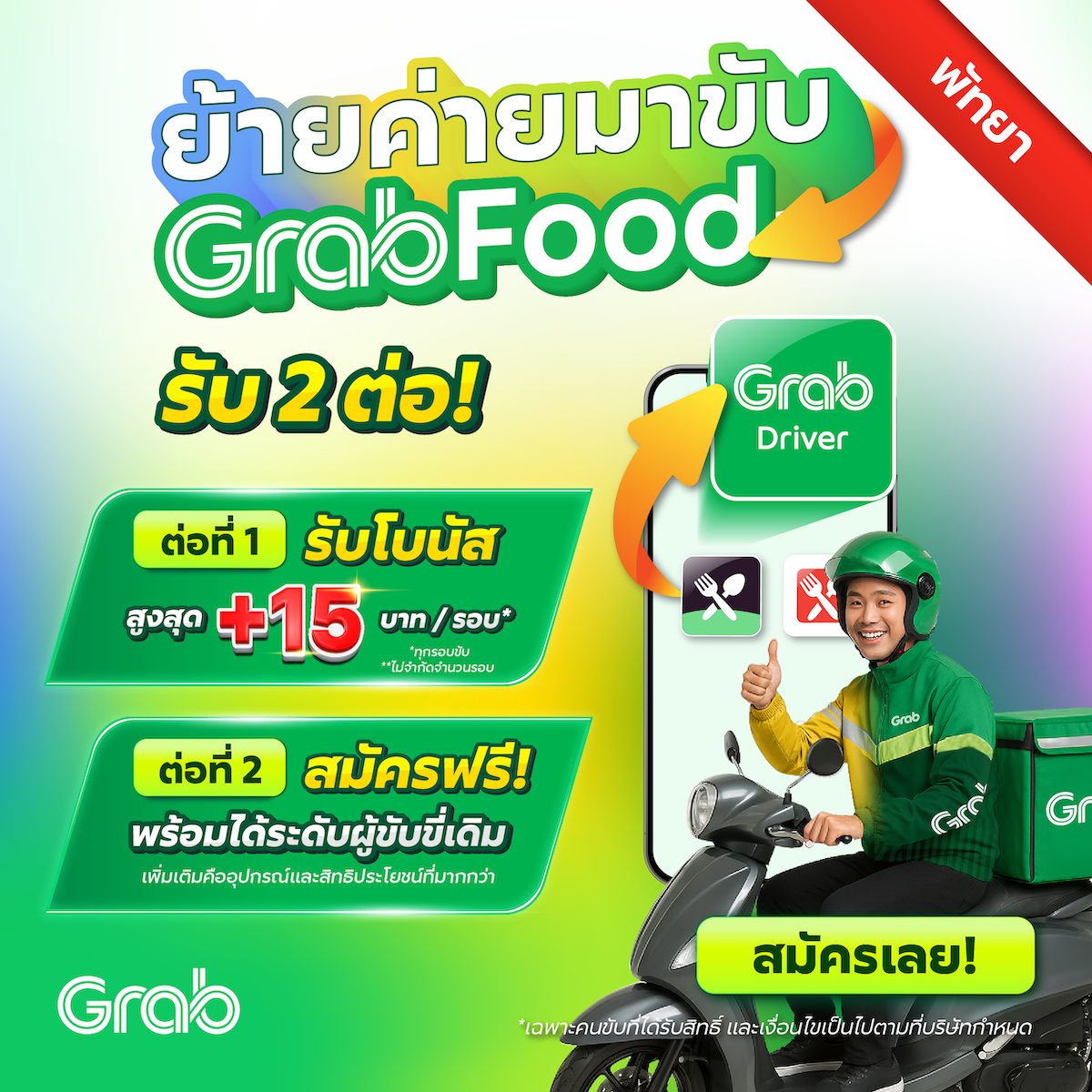 [พัทยา] 🚨 ย้ายค่ายมาขับแกร็บ โบนัสจัดเต็ม ตอบโจทย์ทุกสไตล์การขับ