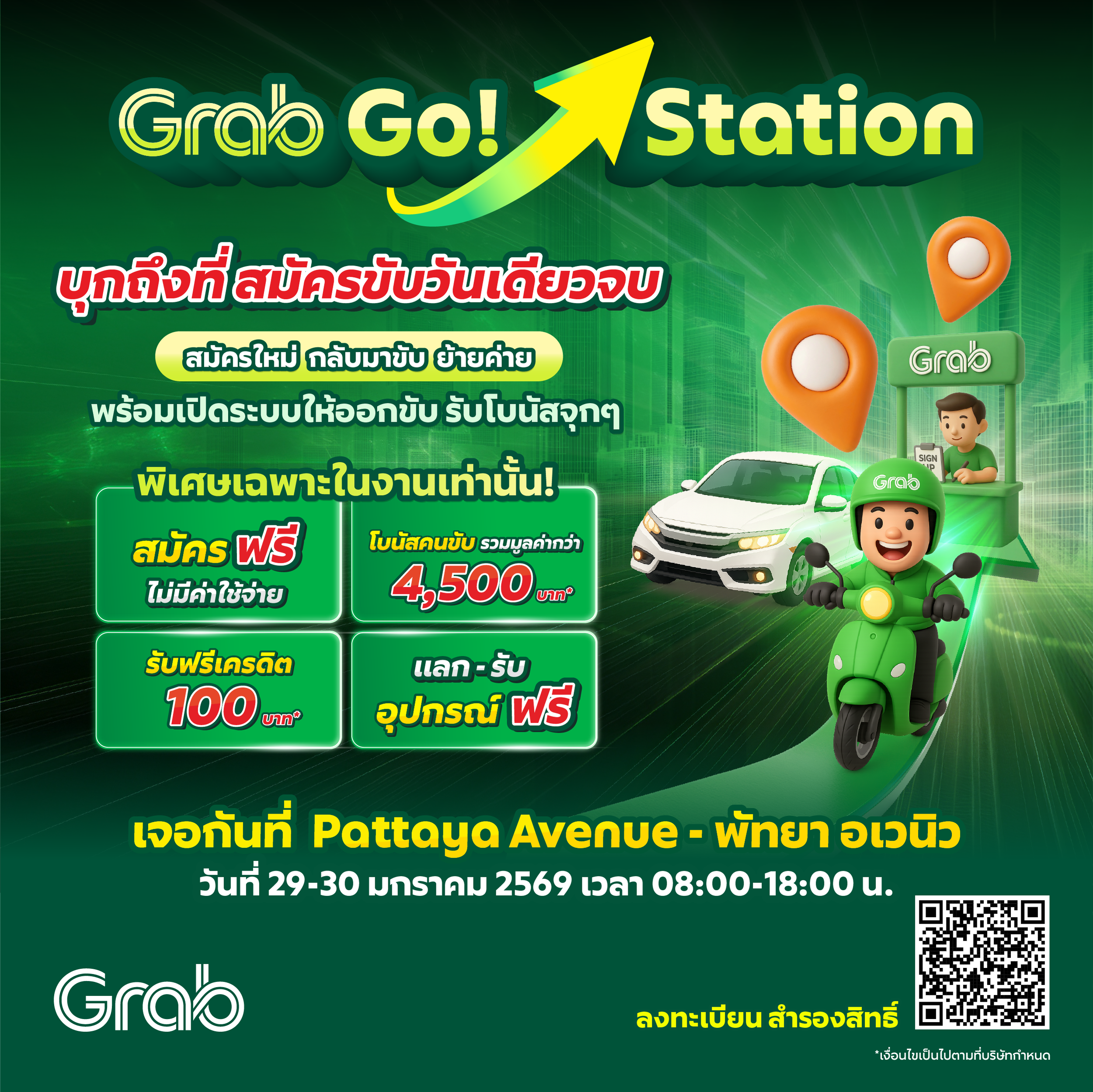 [พัทยา] Grab Go Station สถานีสมัครขับฟรี บุกถึงที่ โบนัสถึงใจ