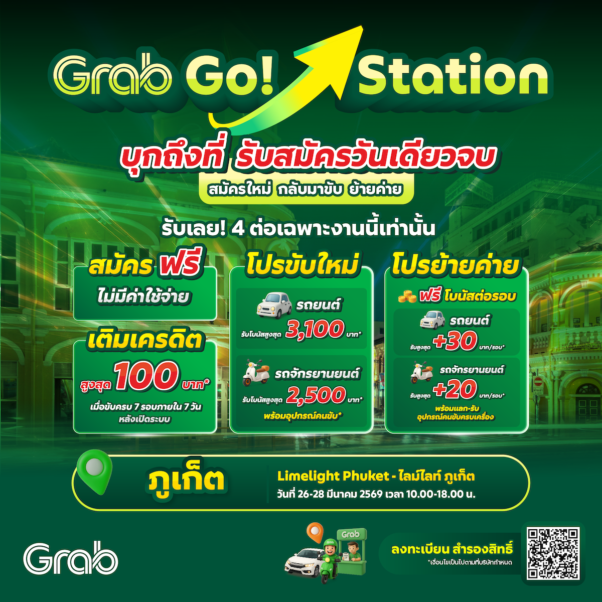 [ภูเก็ต] Grab Go Station บุกถึงที่ สมัครขับวันเดียวจบ!
