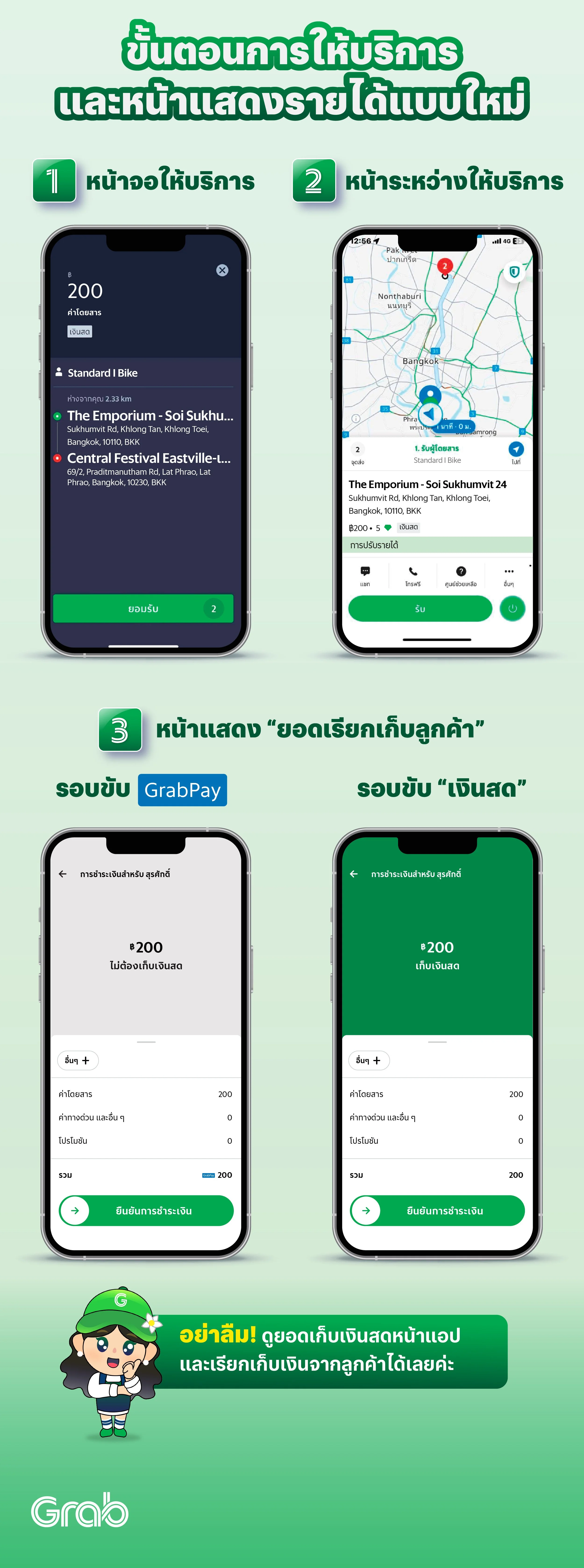 โครงสร้างรายได้ และหน้าแสดงรายได้แบบใหม่ ปรับใช้กับทุกประเภทบริการ ยกเว้น GrabTaxi, Rent (GrabCar) และ Rent (GrabVan)