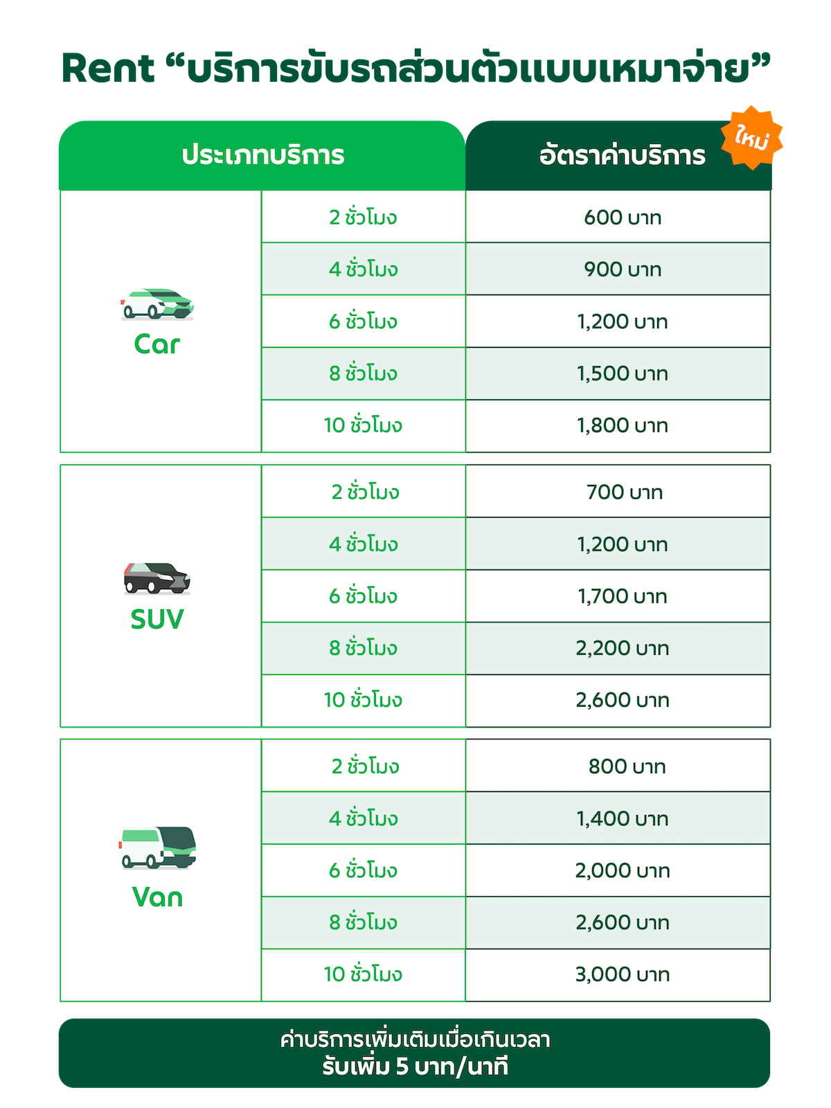 ค่าบริการเหมาจ่ายรวมทุกอย่าง ทั้งค่าน้ำมันหรือค่าเชื้อเพลิง และค่าโดยสาร