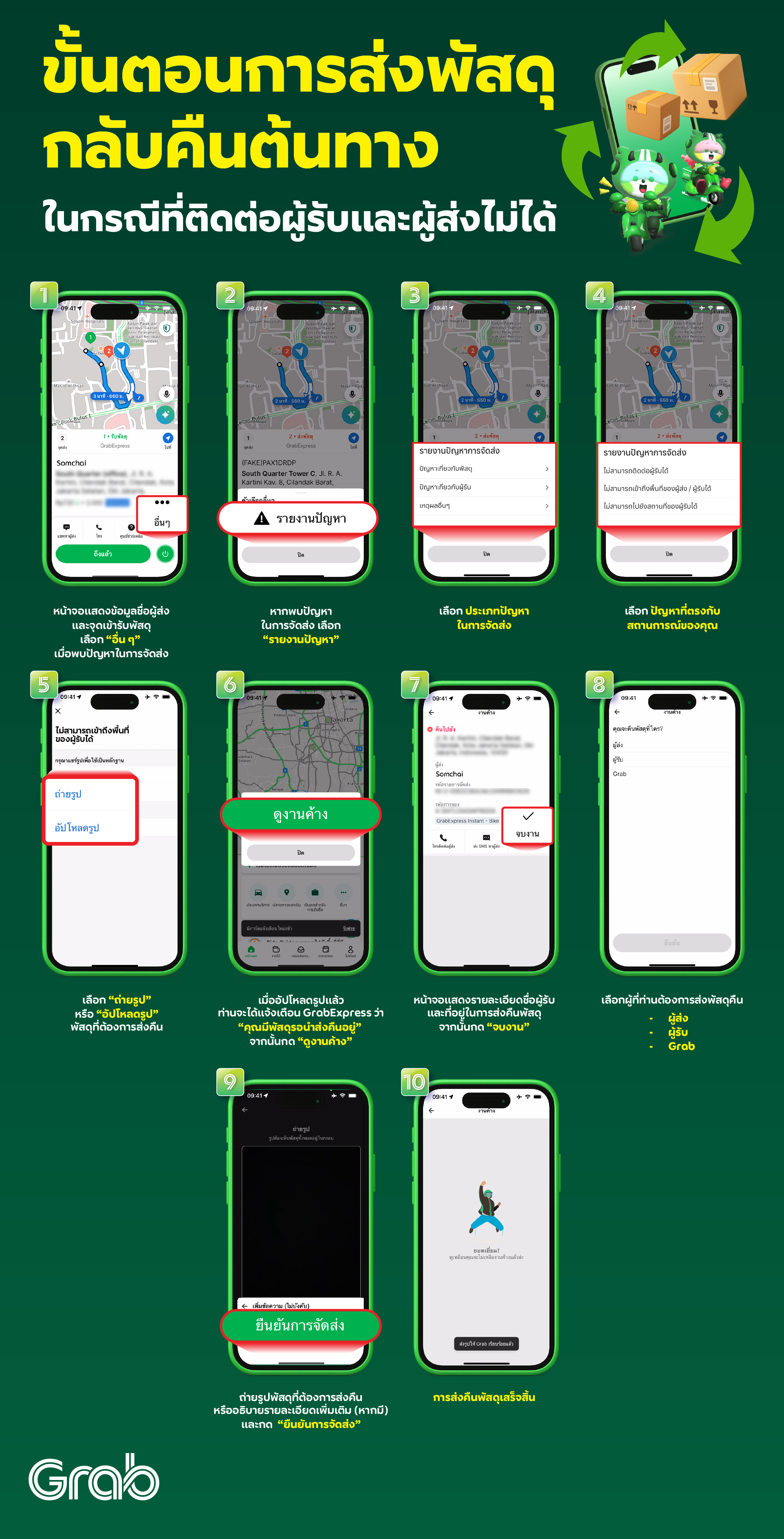 ติดต่อผู้ส่งอย่างน้อย 3 ครั้ง เป็นเวลา 15 นาที หากไม่มีการตอบกลับ สามารถติดต่อศูนย์ช่วยเหลือ ให้ยกเลิกงานได้